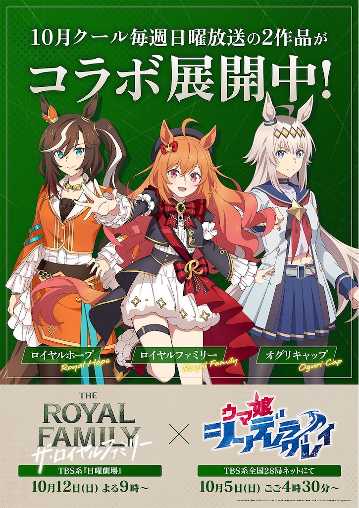TBSでやってるウマ娘シングレとロイヤルファミリーコラボ。 ロイヤルホープに続きファミリーも娘化のイラスト。